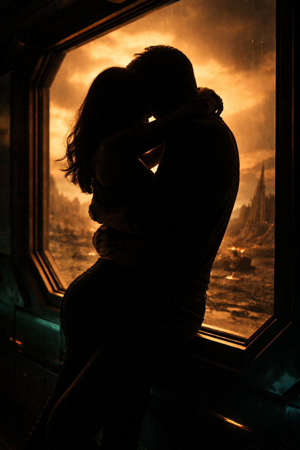 She found him in the observation deck again, staring out at the amber wasteland like it might finally give him answers if he just looked long enough. Three days since they’d started traveling together—three days of careful distance and loaded silences and the kind of tension that made the air between them feel combustible.